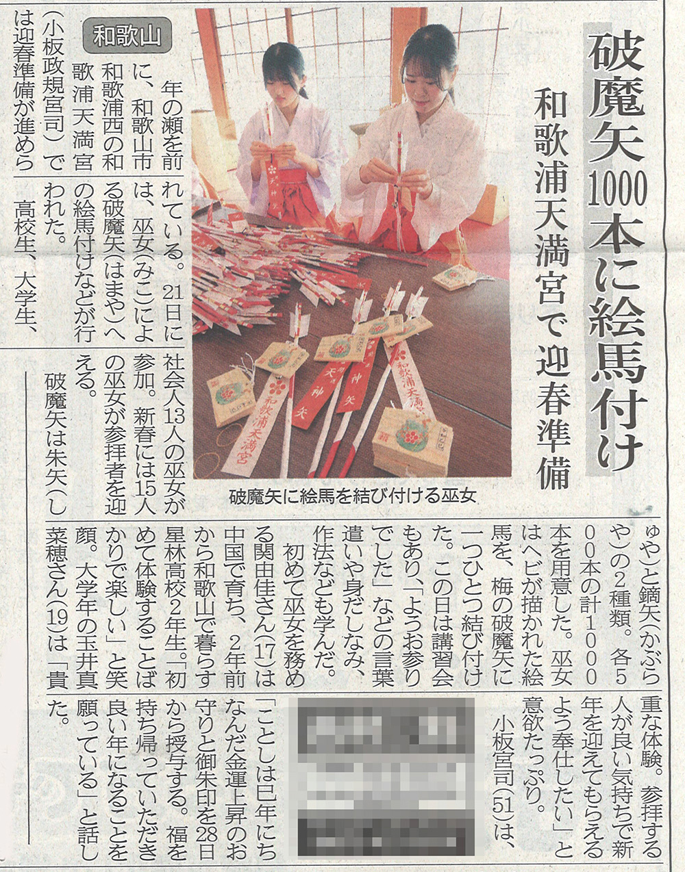 正月、巫女講習会が行われました。 わかやま新報に掲載されました。![]()